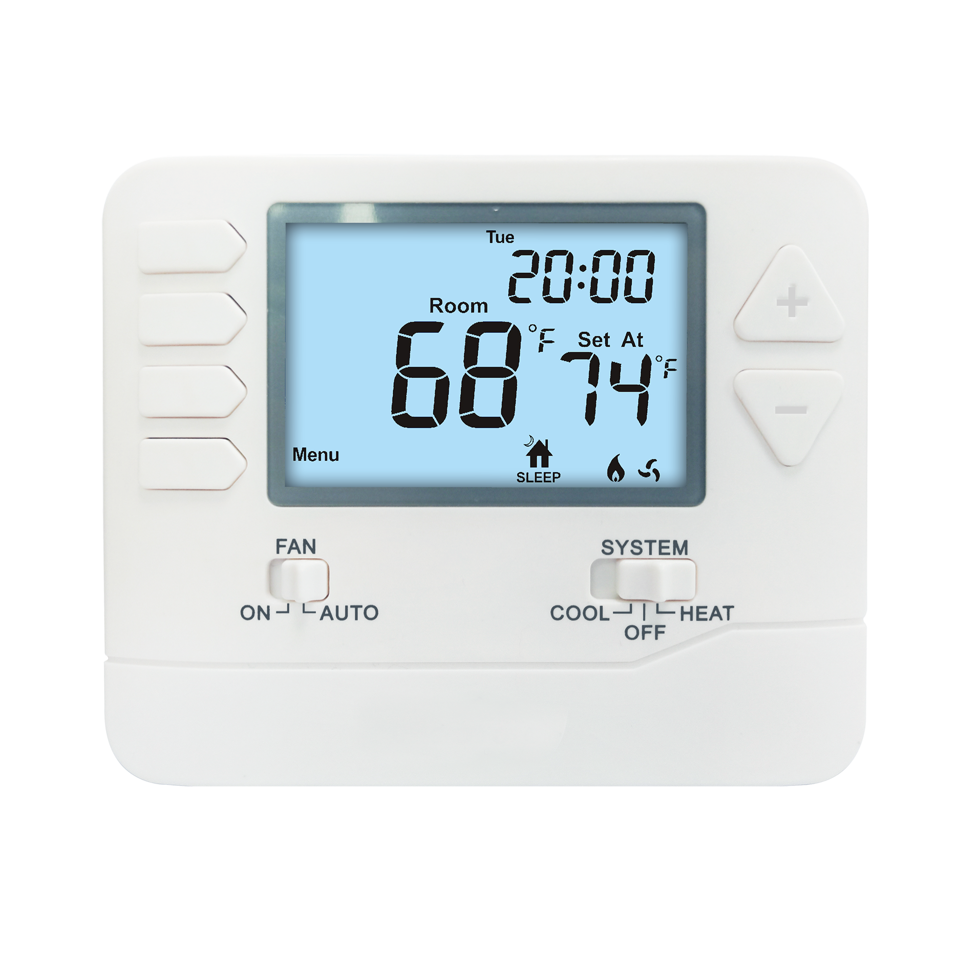 Dankzij de compatibiliteit met de meeste verwarmings-, koelings- en warmtepompsystemen is deze thermostaat een veelzijdige keuze voor residentiële en commerciële toepassingen.Of u nu een traditionele HVAC-installatie heeft of een modern warmtepompsysteem, deze thermostaat kan naadloos worden geïntegreerd en helpt u het ideale binnenklimaat te behouden.